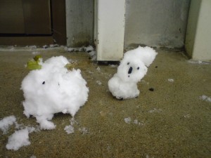 今年の冬は全国的に雪が多いそうです。 昨夜の天気予報で、佐賀も雪が降るといっていましたが大当たりでした! 朝はちらほら・・・の雪が、11時ごろから本格的に降りはじめました。 佐賀で昼間降った雪が積もるのはとてもめずらしいことです。 せっかくなので、クレアに来ていた子どもたちも雪遊び。 ふわふわの雪で、小さな雪だるまと雪うさぎが出来上がりました。 少し遊んだら、お母さんのお弁当を食べて 心もお腹も温まりました。