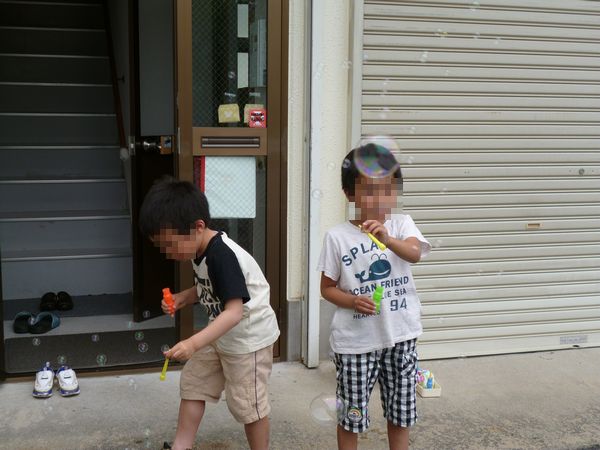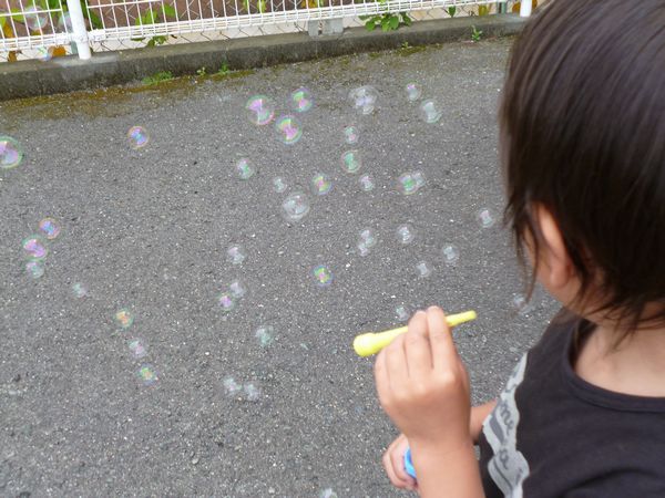 風が吹いて、しゃぼん玉の飛ぶ様子をじっ~と見つめたり。。。