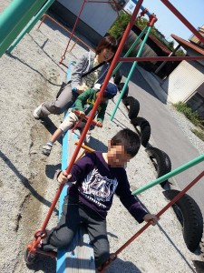 ブランコ2つ、滑り台、上記写真の遊具の3種類の遊具のみですが、とっても楽しめる