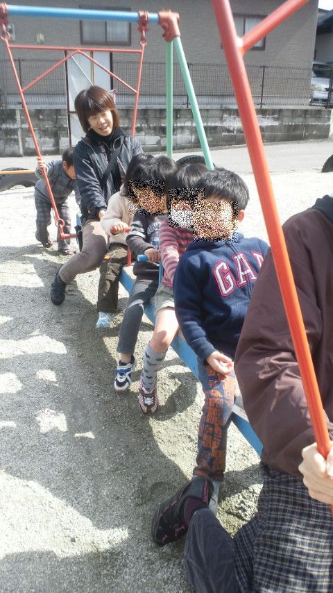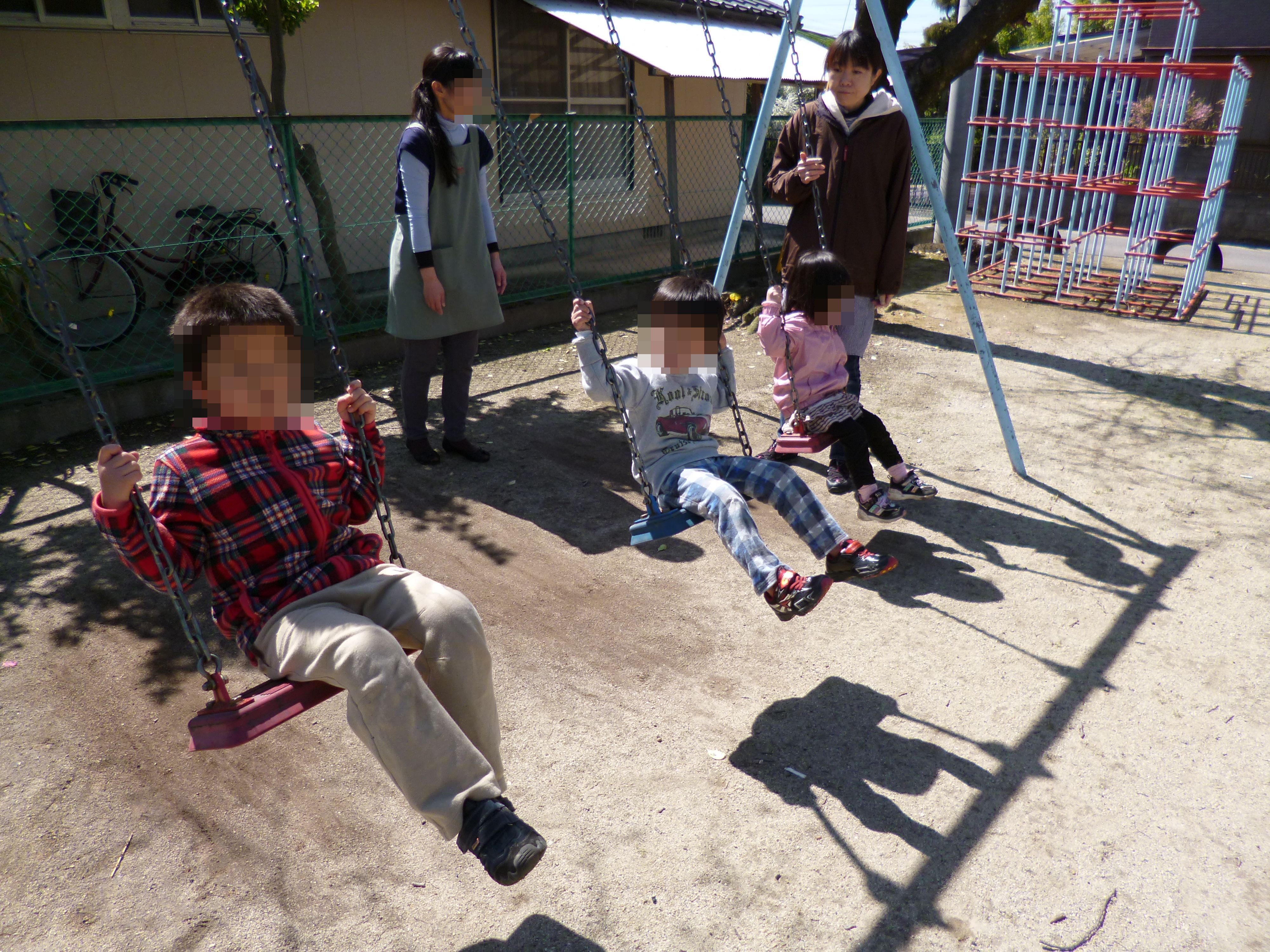 一人乗りのブランコも大好き!3人並んでゆ~ら、ゆ~ら。