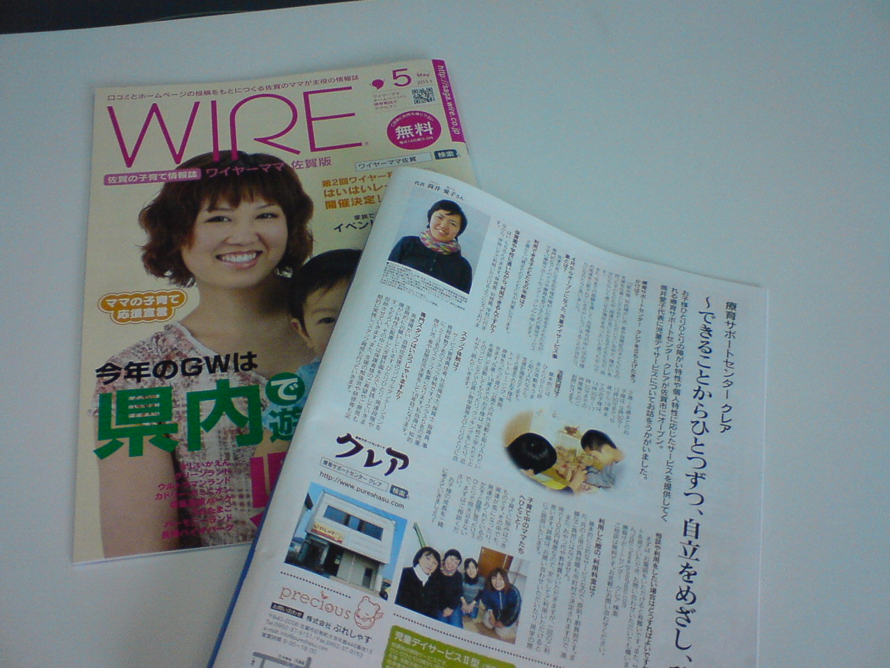 知ってる人は知っている 佐賀のママが主役の情報紙「ワイヤーママ佐賀版」5月号に 療育サポートセンタークレアの記事が掲載されます! スタッフの写真や、児童デイサービス事業への想い、 事業内容など載っています。 「ワイヤーママ5月号」見かけた際には ぜひお手に取ってご覧ください。