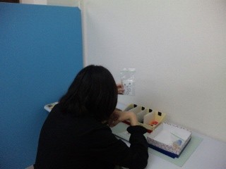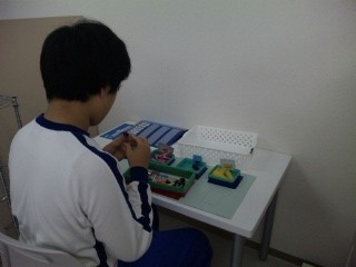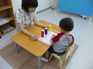 3色の色分けの個別課題です。じっと見て、集中されています!