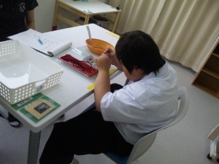 「小さなビーズを指定されたところまで通す」タスク(課題)です。
